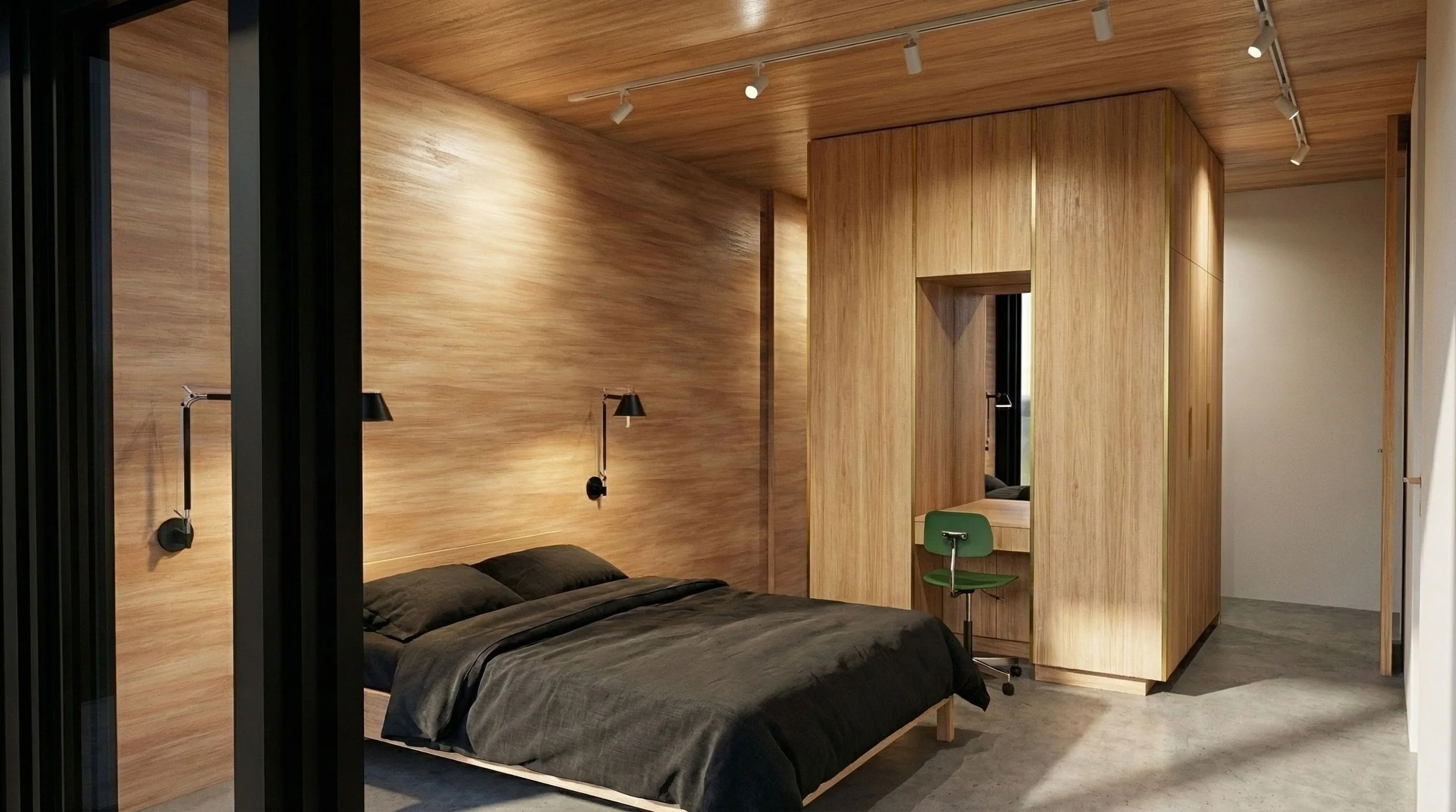 Bedrooms two, three and four all have built in robes and student desk with Artemide Tolomeo light fixtures.