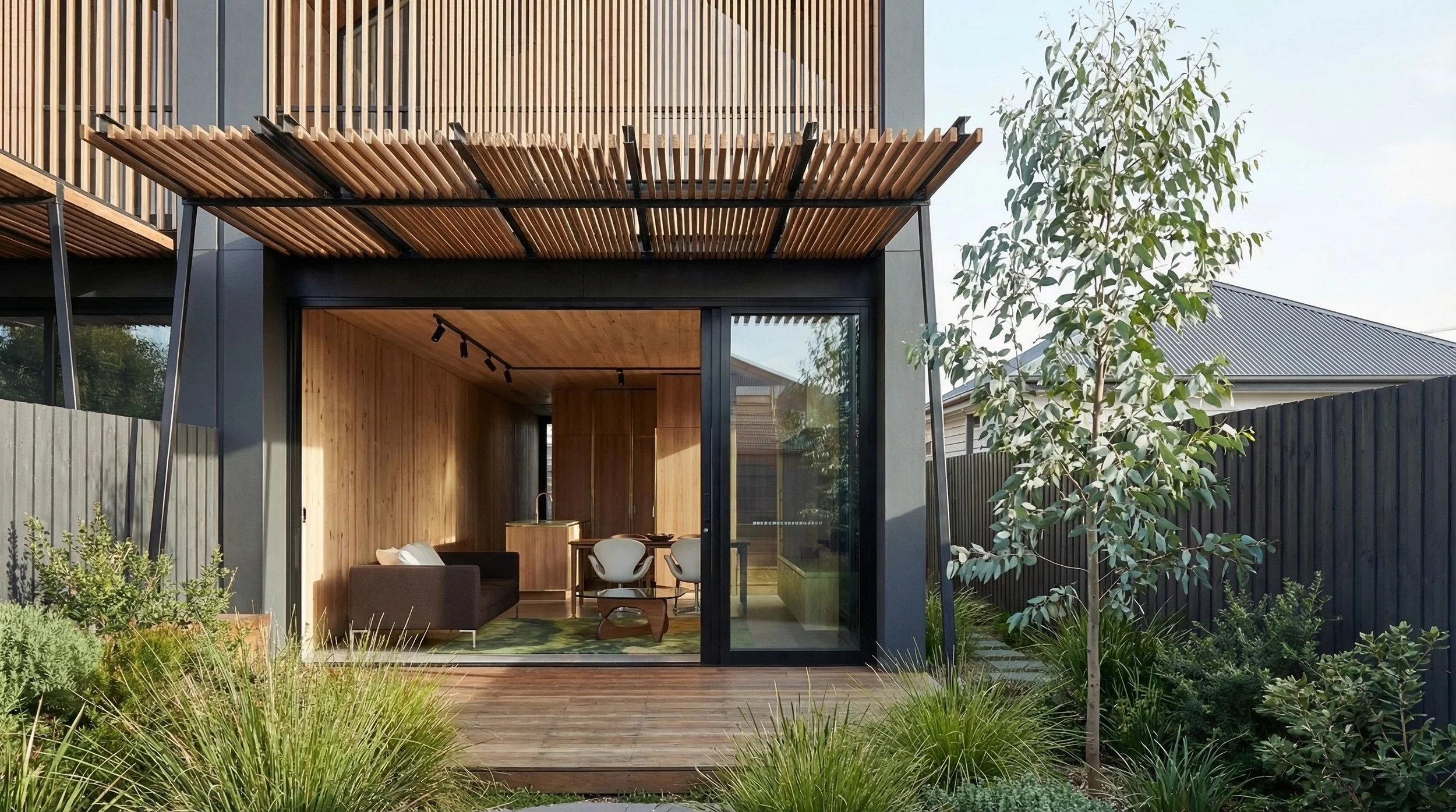 The inspiration of the cladding in it’s layering form comes from the layering of sedimentary rocks found across the ancient landscape of Australia. The name Seismo was given to a very large “carpet python” (Morelia spilota) that was approximately 4 metres long and 20 centimetres in diameter that inhabited the seismograph station and would often be found slithering out the door on arrival.